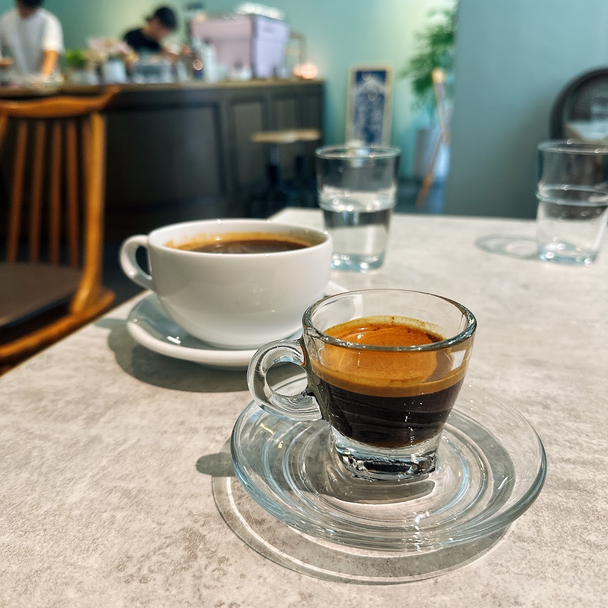 吳興街巷弄裡的滿分小店,薄荷綠牆面配粉紅色咖啡機,還有一隻斑紋店貓坐鎮吧台。濃縮的金黃油脂漂亮得像藝術品,巴斯克起司蛋糕是絕配。陽光透過落地窗灑入,葉影斑駁在牆上,是信義區最安靜的咖啡角落。