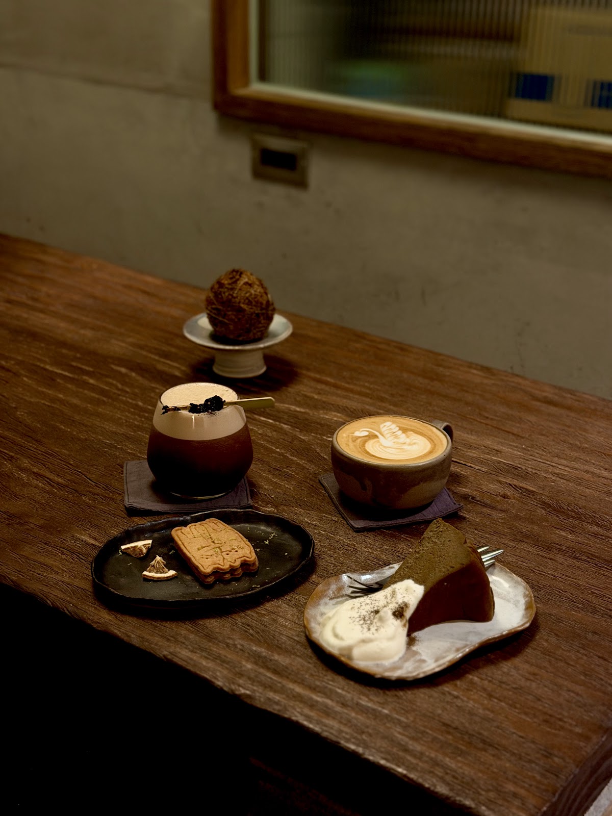 栖嶼咖啡habland_coffee藏在台南中西區中正路53巷的老巷弄裡,入口的發光「栖嶼」貓咪招牌在傳統彩繪牆面前格外顯眼。店名「栖嶼」取棲居於一方小島之意,店內充滿貓咪元素——展示架上排列著貓咪主題陶瓷器皿、貓咪主題書籍、項鍊與生活飾品,像是一個融合咖啡、甜點與生活選品的複合型據點。工業風水泥天花板搭配綠色碎石拼貼地板,木質吧台後方是咖啡設備,陽光從大窗透入。公休日以Instagram公告為主,平日11:00至19:00營業。評分4.8、95則評論,目前仍是中西區相對低調的待發掘新據點。