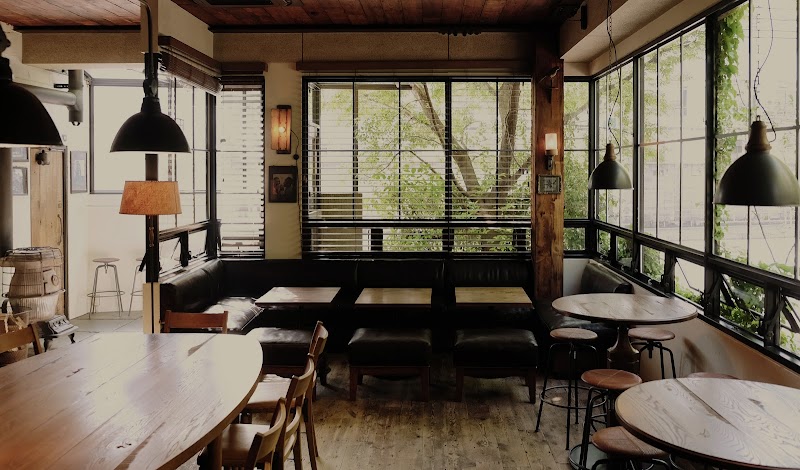 北浜のレトロビル1階のカフェ。トラックをモチーフにした内装が目を引く。