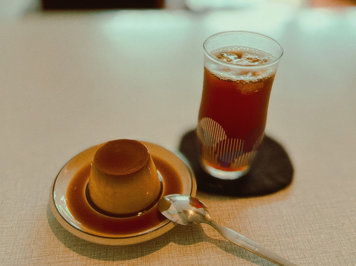 位於新北市平溪區嶺腳寮 7 號的「羊水」,是平溪線嶺腳站旁、藏在山中老村裡的一家老屋咖啡店。嶺腳是平溪線往內陸走的小站之一,氣氛比十分安靜得多——沒有放天燈的人潮、沒有觀光化的喧鬧,只有沿著鐵道走進村子裡的小路、老屋與綠意。羊水這家店就嵌在這份寧靜裡。木製百葉窗、紅磚與斑駁水泥的老屋外觀,戶外有木製階梯式平台座位;推門進去是文青風的老屋空間,木質牆面、書架、紅皮沙發、復古鐵椅與長凳,工業風電扇緩緩轉著,置物架上偶爾還能看見一隻店貓在打盹。手寫菜單掛在木製梯架上,濃縮、美式、拿鐵都有,另一側是手沖單品豆單;端上桌的拿鐵帶著精緻拉花、配上招牌焦糖布丁,是羊水的標準下午套餐。從十分繼續搭平溪線進來,再沿著鐵道走進村子,這趟為一杯咖啡而來的小旅行,本身就是平溪線最被低估的玩法。